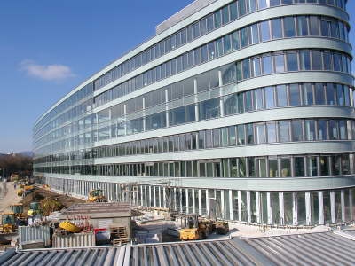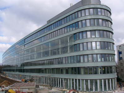 Der neue Hauptsitz für die Eurohypo in Eschborn hat die Form eines Richtung Frankfurt gezielten ca. 200 Meter langen Pfeils. Besonders auffällig an dem Gebäude sind die durchlaufende Glasfassade und die mäanderförmige Grundrissorganisation, was allen Mitarbeitern aus ihren Büros schöne Ausblicke bietet und die Einrichtung von Gartenräumen innerhalb eines Hauses ermöglicht.